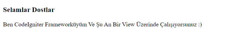 <p>Ben CodeIgniter Frameworküyüm Ve Şu An Bir View Üzerinde Çalışıyorsunuz :)</p>
