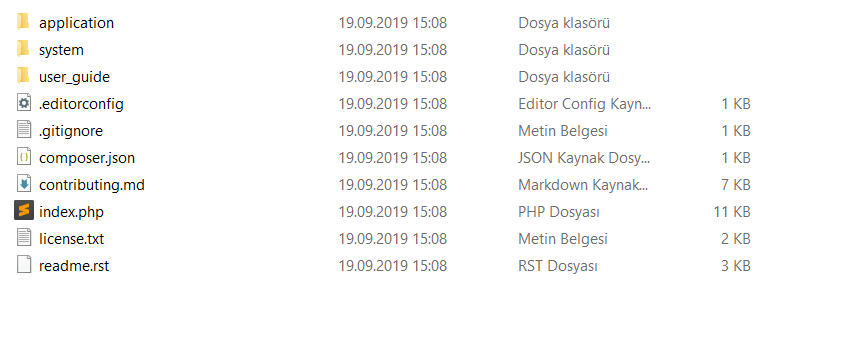Öncelikle konumuza geçmeden önce codeigniter3 frameworkünü indirelim. (İndirme konusunda problem yaşayan dostlarım varsa buradan yardım alabilir). İndirdiğimiz codeigniter frameworkümüzün içerisinde