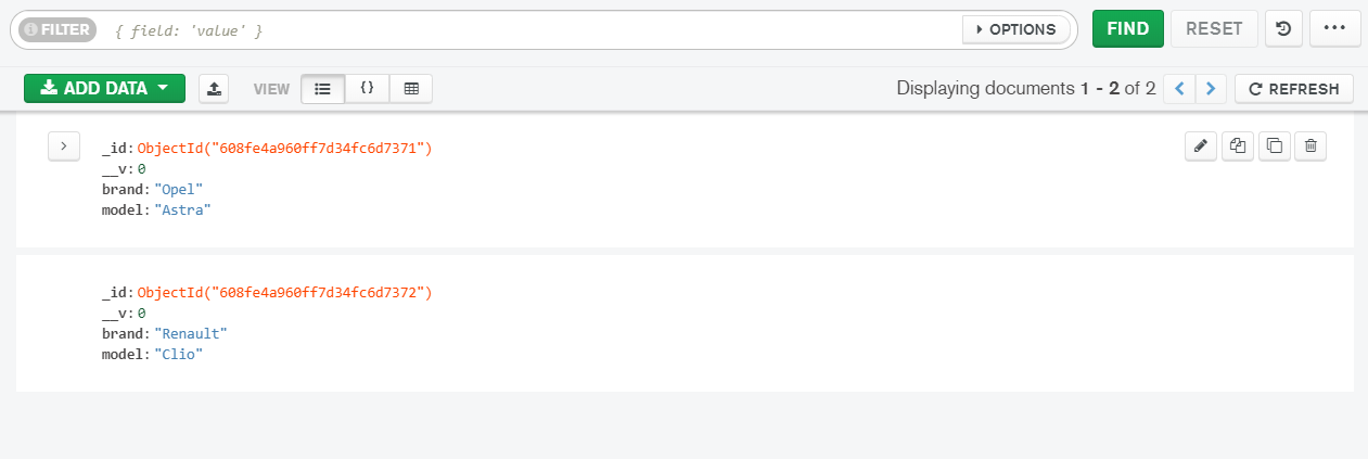 var car = new Car.Car.insertMany([ // insertMany() fonksiyonunu kullanıp içerisine dizi attık ve birden çok objeyi içerisine dahil ettik